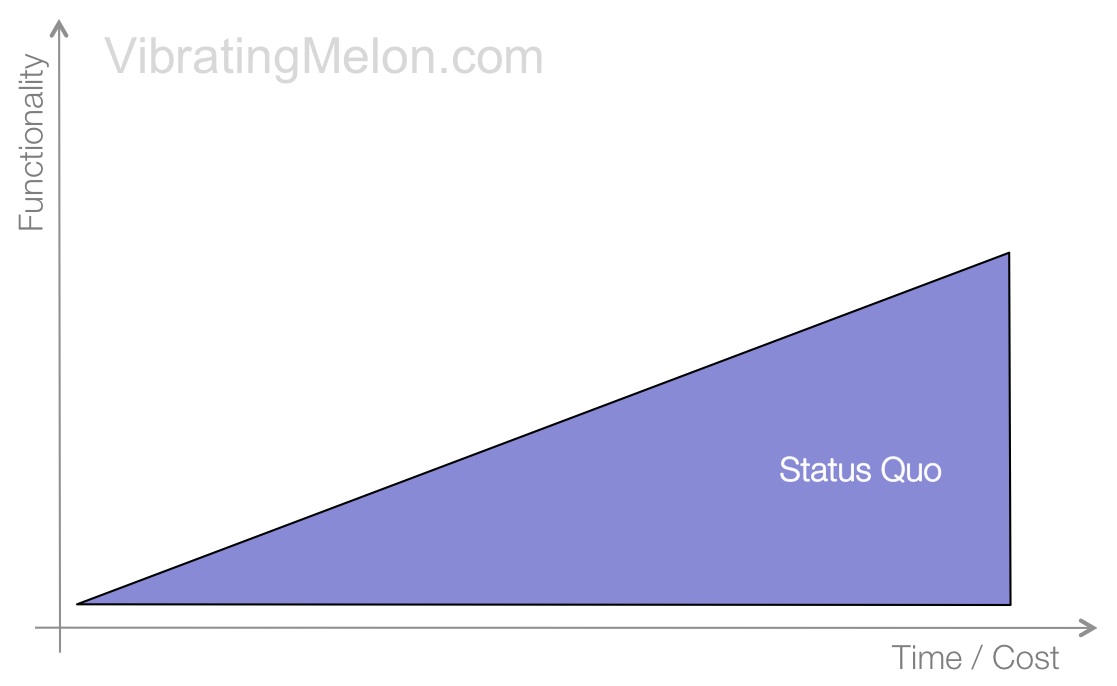 Not only does the rewrite often take longer than expected but functionality is not even flat at the end of it – functionality is actually lost as a side-effect of the rewrite.