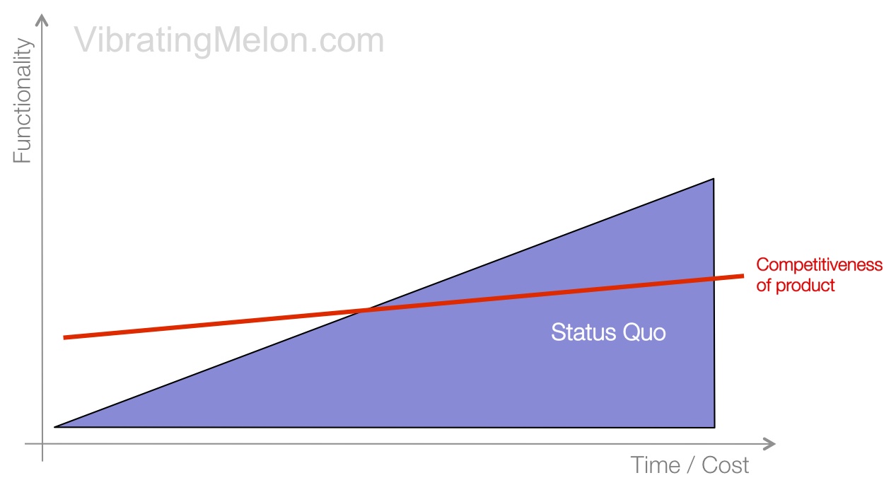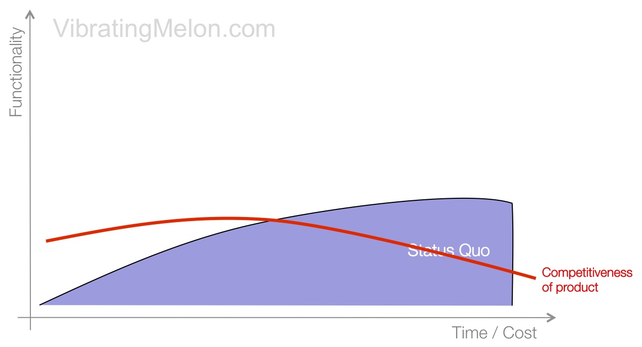 Of course, this chart is idealized – functionality will increase in a more lumpy way as you release major new chunks of functionality and competitiveness will move up and down against your market. However, they demonstrate the point.